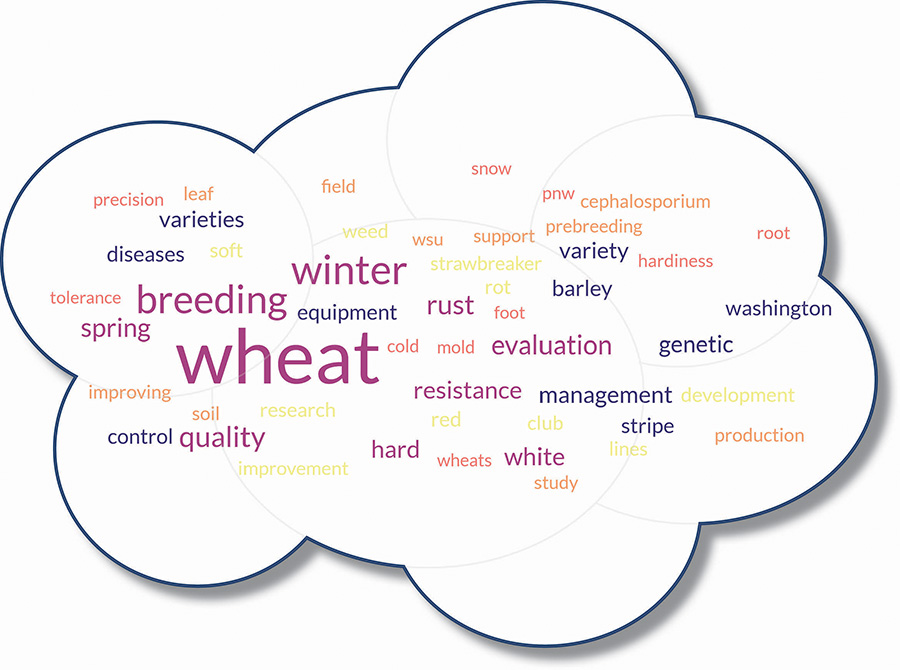 The WGC invests about $2 million annually in research, with the core portfolio spanning breeding, Extension, variety testing, and quality assurance to ensure new varieties meet market standards (Table 1). Projects address both near-term challenges and longer-horizon needs, such as heat and drought tolerance. Notably, innovative faculty have also leveraged WGC funding to attract additional USDA and National Science Foundation grants, multiplying the WGC’s return on investment. The diversity of the research portfolio is captured in the word cloud below.